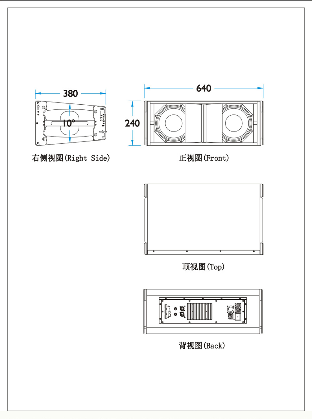 类 型:双10”三分频高性能线性阵列音箱