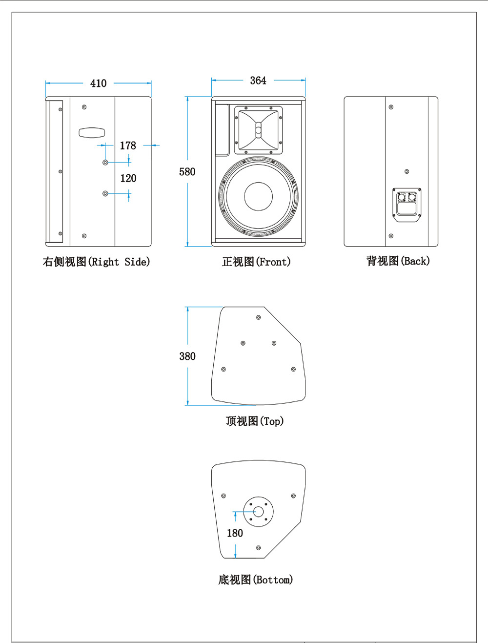 驱 动 器:低音:1 x 12' , 音圈直径 75mm
