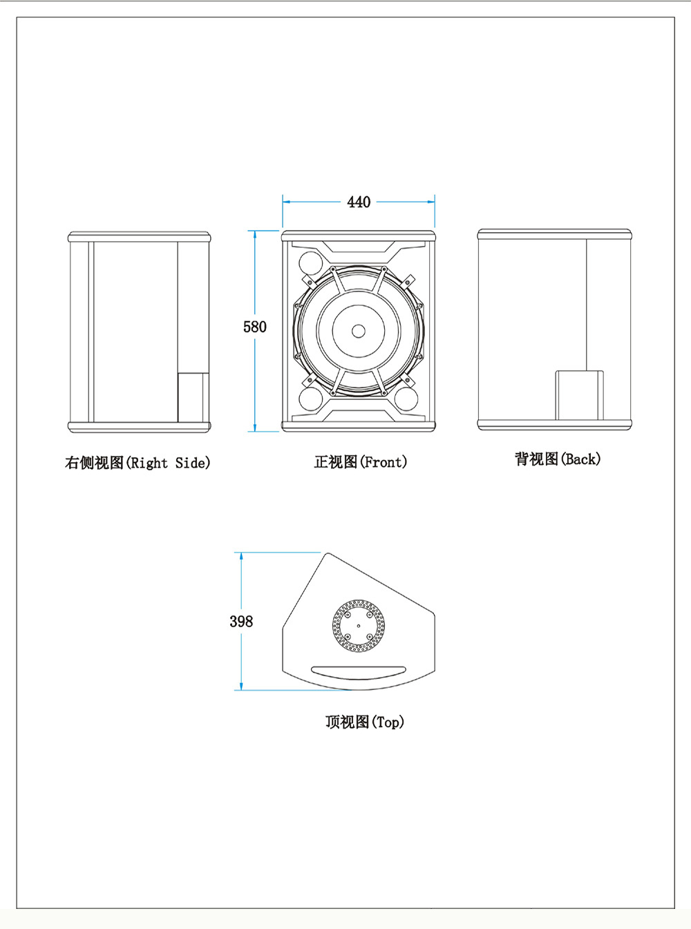 驱 动 器:低音:15" 单元,3.0" 音圈