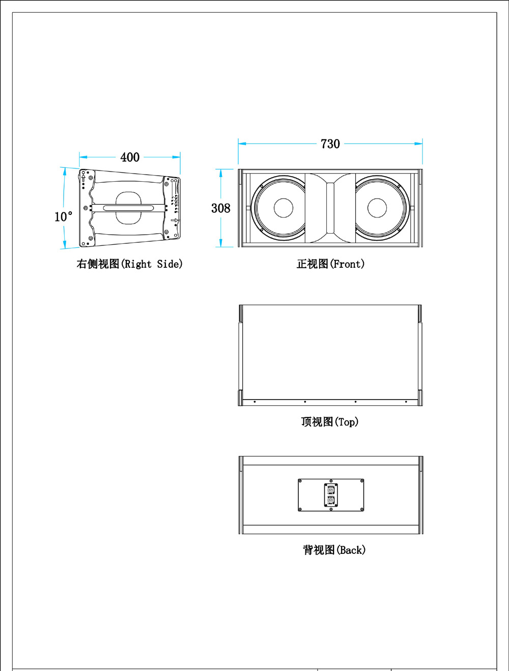 驱 动 器:低音:2 x 10' , 音圈直径 65mm