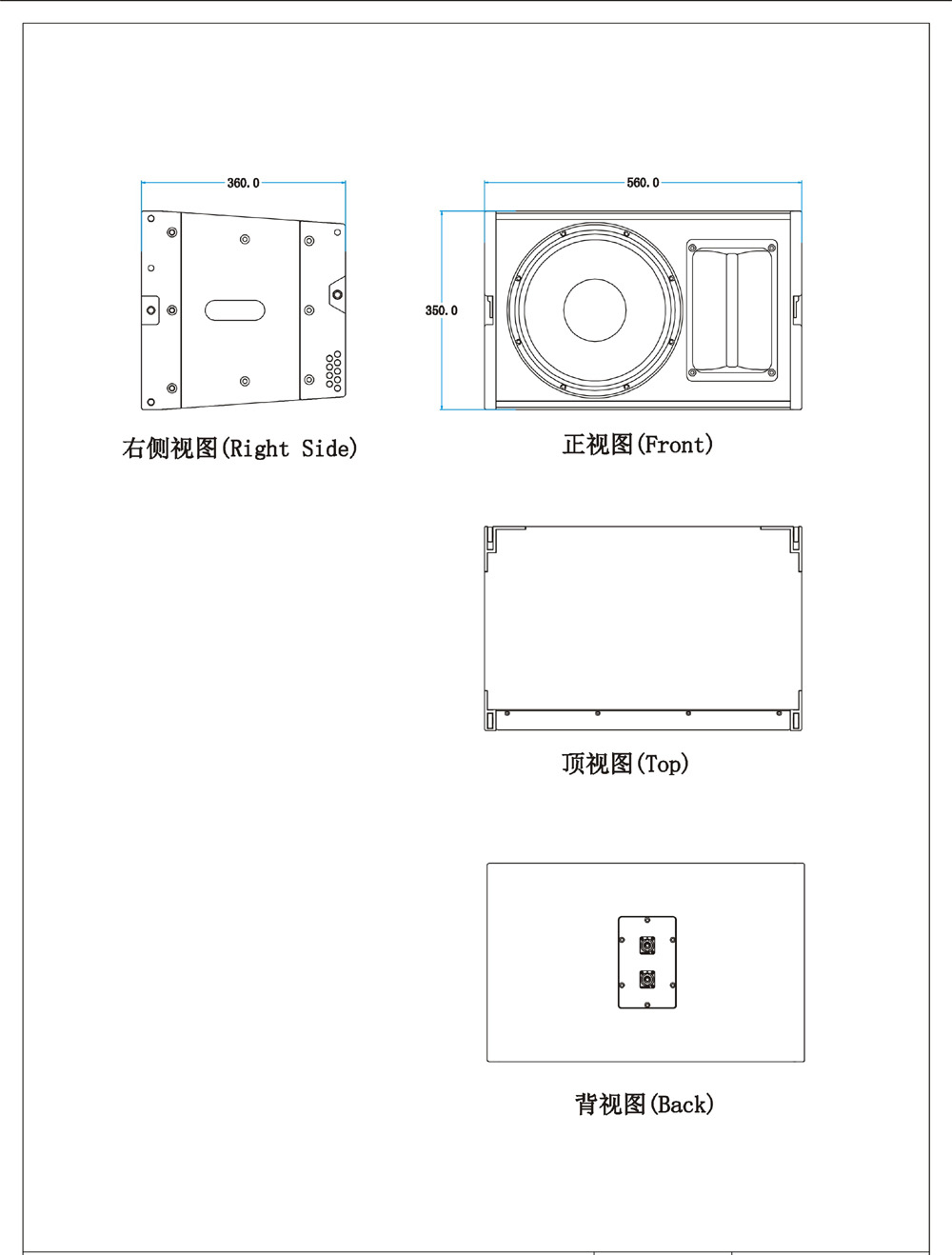 驱 动 器:低音:1 x 12' , 音圈直径 100mm