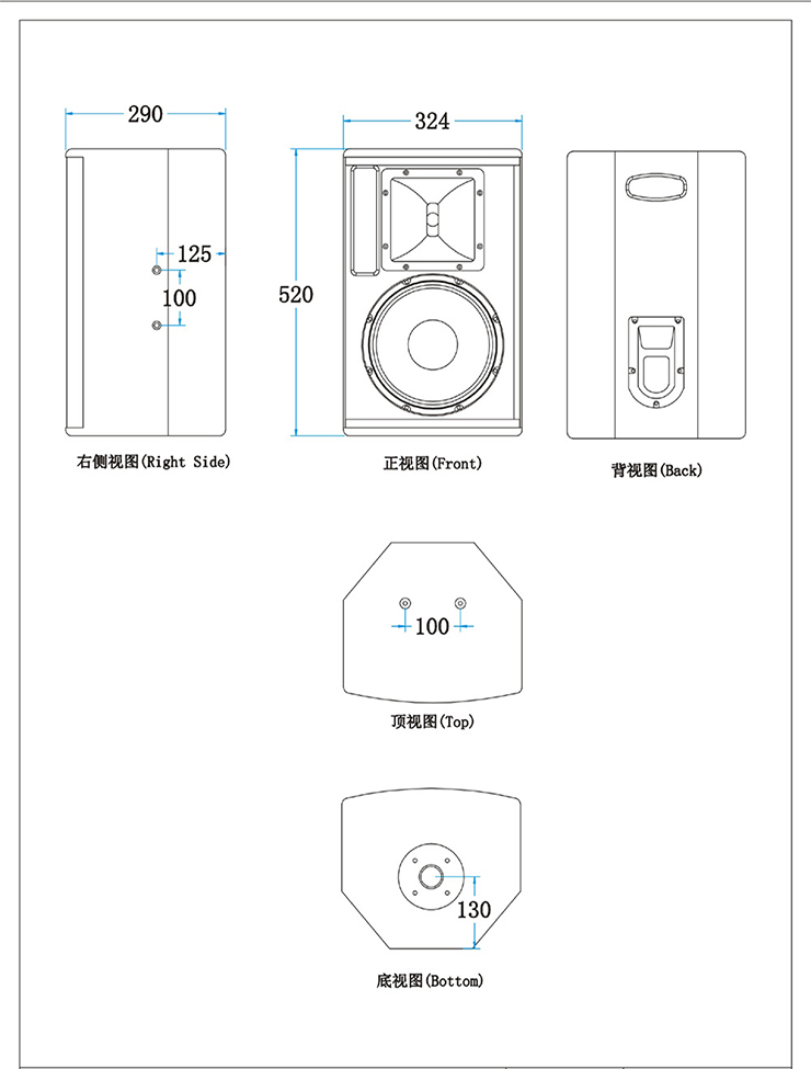 吊 挂 件:音箱顶部,2xM8mm螺孔